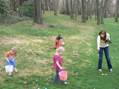 There is a family in our ward that does a massive Easter Egg hunt every year. This is Katy, otherwise known as Ben's Friend. He couldn't remember her name for the first several months we were in Ohio and just called her, My Friend. Ben doesn't typically connect with adults as he has a lot to say and it is easily overwhelming to tired adults; not Katy! They has us over for dinner our second week here, and she talked to Ben through our entire meal of fabulous lasagna, including seconds. He's loved her ever since!!! (We actually knew of Katy before we moved here as her sister's family was in our ward in Dallas, and her niece was one of our favorite babysitters before she went to college.)