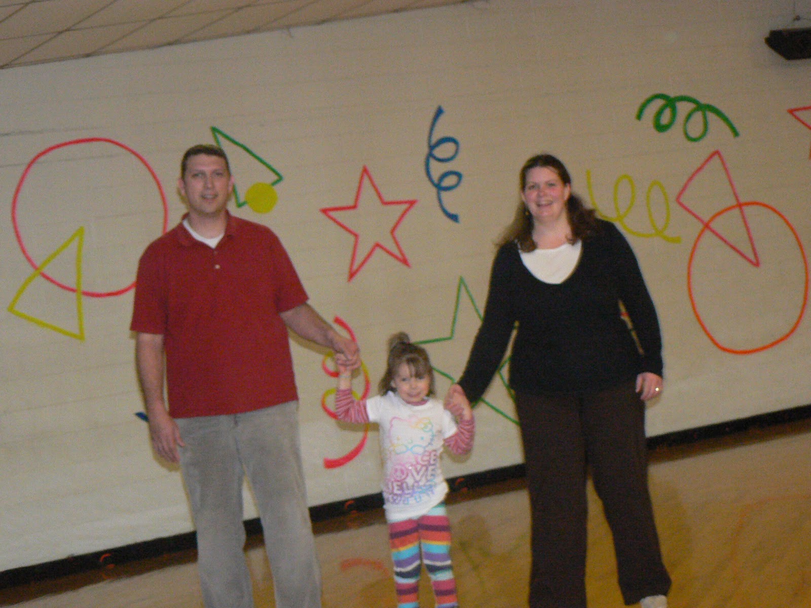 We went to Family Night at the local Roller Skating Rink! Granted, Emily had a great time, even though her face looks a bit put-out here. She was exhausted by the end of the night! After a few minutes on roller skates, Andy and I wondered if we were crazy to do this! We were both 'awesome' in our younger days, but the ankles don't work the same now! Each time around became more and more comfortable...for all of us!